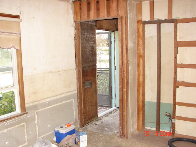 In fact, we are almost ready for primer in the bedrooms, hallway, and living room. Our next big projects, after finishing the plumbing, are sheet-rocking throughout the house over the areas that are exposed, refinishing the floors, priming and painting the walls and wood work. And redoing the kitchen.